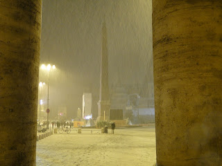 Minha atual psicose é entrar em site de meteorologia pra ver o tempo em Roma.Pelo que ando vendo, do dia 14 em diantes começa a melhorar, tendo um pouco de neve lá pro dia 16 e a partir daí a tendência é pelo menos parar de nevar e chover e continuar o frio.