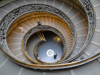 Acordamos atrasados com o dia muito frio (3º com sensação térmica de -1º, segundo a previsão do site br.weather.com). Muito frio, mas nada de anormal. Corremos para pegar o metrô e chegar na visita agendada para as 9h30min do Vaticano, mas erramos a entrada. Pelo mapa parecia que a entrada do Museu era ao lado da Praça São Pedro, mas, embora a saída seja na Praça São Pedro, a entrada se dá 1km depois. Resultado: correria e um quase choro meu, acreditando que não conseguiria entrar pelo atraso. Para a salvação geral, a precaução teve a sua recompensa: A fila de quem reservou pela net praticamente não existe, ao contrário da que dobra o muro do Museu pelo lado de fora (imagina no verão). Seguimos pela entrada à direita, para quem tem a prenotazione. Há um forte regime de segurança (parece o do aeroporto) e depois de passar por ele, na bilheteria, troca-se o ticket da net por dois cartões – informação importante, pois passamos direto e tivemos que voltar à bilheteria. Entramos, mesmo com 20min de atraso e o atendente nada disse, não pareceu se importar – à essa altura agradeci à origem latina e não britânica 🙂